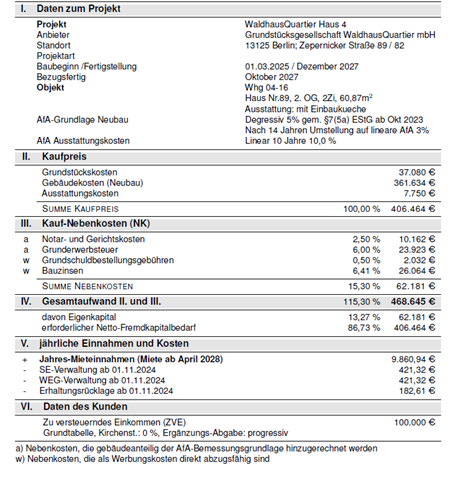 Liquiditäts-Musterberechnung Wohnung