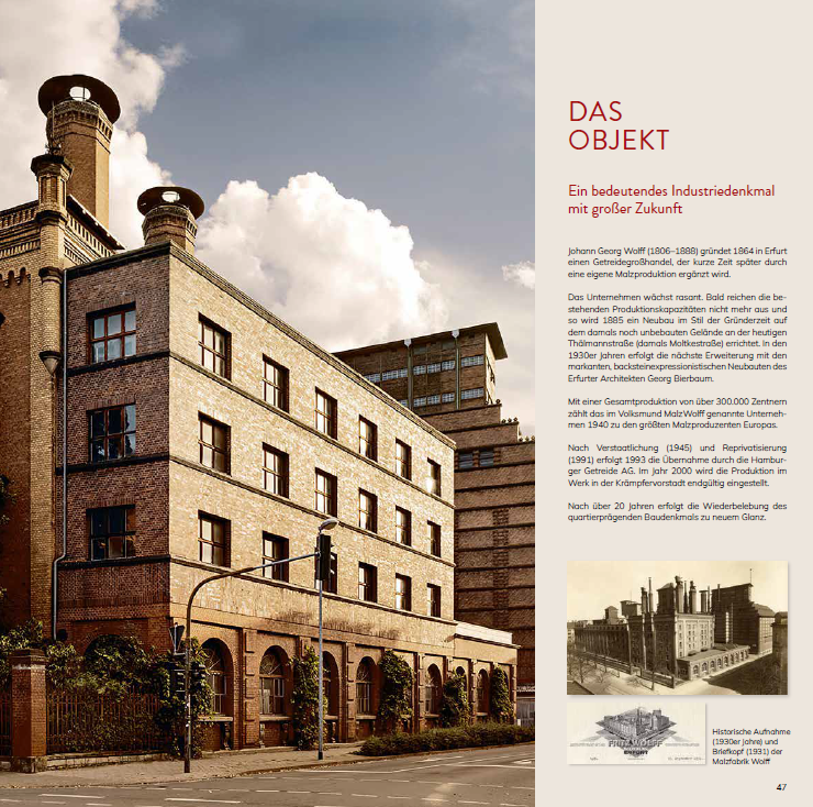 Das Gebäude, in dem die neuen Wohneinheiten entstehen werden, ist ein ehemaliges Malzwerk, das zu den größten in Deutschland gehörte. Die Mälzerei in der Thälmannstraße ist ein städtebaulich bedeutendes Ensemble der Industriearchitektur und als Kulturdenkmal ausgewiesen.